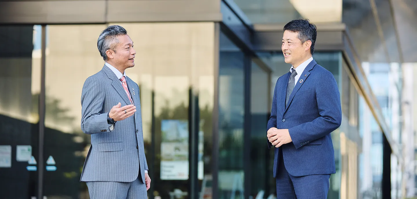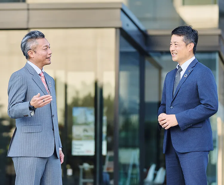 建物の安心・安全な環境を維持し、持続的価値を提供する「ビル管理事業」と、提案・設計から新築・リニューアルまで担い、建物をアップデートする「建築事業」。戸田ビルパートナーズでは、この2つの事業を緊密に連携させることで、価値創出につなげている。両部門を率いる2人に、それぞれの事業部の特徴から連携がもたらすシナジー、未来のビジョンまで語り合ってもらった。