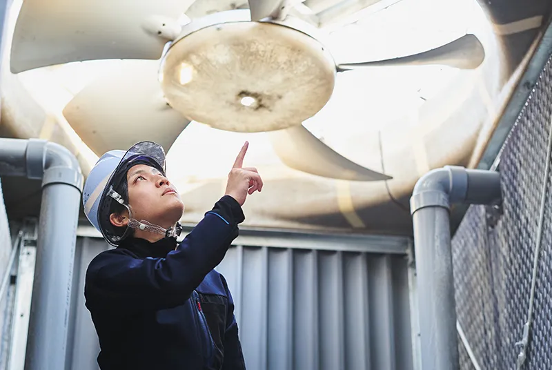 現在は、主にオフィスビルや学校などの大型空調機器の更新工事において、施工管理を担当しています。現場の安全管理や工程管理、そして品質管理が主な役割です。