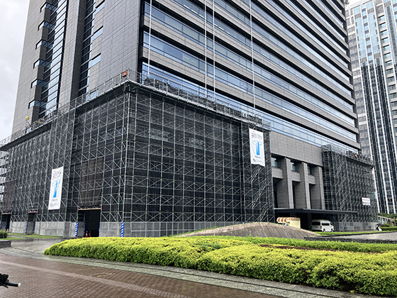 | 工事概要 | 外壁改修工事 鉄骨鉄筋コンクリート造 地上23階、地下2階 延床面積:76,925.18m2 |